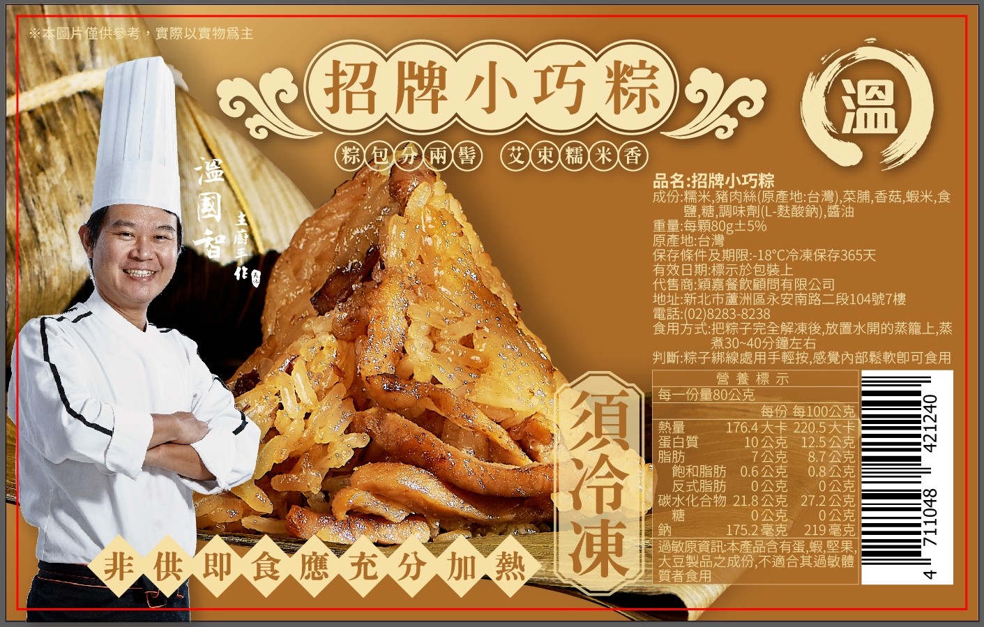 ★溫國智主廚遵循傳統古法製成★黃金比例調配豐富內餡★精選台灣雲林在地食材★經典粽香飽滿餡料口感軟嫩美味國宴主廚 溫國智師傅遵循傳統古法製成做工講究費時黃金比例調配豐富餡料,嚴選來自西螺鎮農會Q彈糯米,...